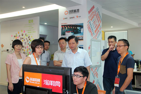 在考察中,賴?yán)^秋副市長通過環(huán)球鞋網(wǎng)、淘鞋網(wǎng)宣傳視頻以及淘鞋網(wǎng)實時銷售展示系統(tǒng)等,充分了解了訊網(wǎng)科技的電子商務(wù)服務(wù)模式。賴?yán)^秋副市長說,龍巖是革命老區(qū),不僅有著深厚的文化歷史底蘊(yùn),近些年來的經(jīng)濟(jì)發(fā)展也同樣令人矚目。隨著互聯(lián)網(wǎng)時代的到來,龍巖的電子商務(wù)也在發(fā)展,但規(guī)模小,較為零散,沒有形成產(chǎn)業(yè)集群優(yōu)勢和良好的電商氛圍,龍巖林竹、茶業(yè)、薯業(yè)等六大重點產(chǎn)業(yè)和蘭花、漳平水仙、咸酥花生等七大特色產(chǎn)品,仍有很大“走出去”的空間。此次來訪,訊網(wǎng)科技在聚合產(chǎn)業(yè)資源優(yōu)勢,引領(lǐng)傳統(tǒng)鞋企運用電子商務(wù)的模式進(jìn)行業(yè)務(wù)拓展上取得的成果讓人印象深刻,這種模式值得龍巖借鑒。
