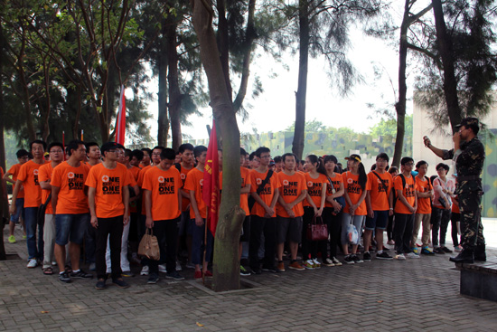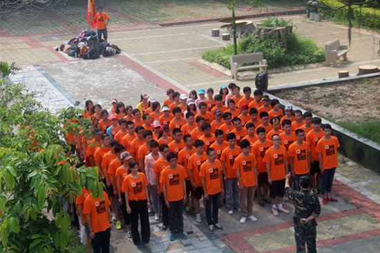 當(dāng)天抵達(dá)大嶝島后,整個大團(tuán)隊被分成兩個連隊:“尖刀連”和“英雄連”,并分成了八個小隊。首當(dāng)其沖迎接所有員工的就是教官嚴(yán)格的軍訓(xùn)。一個口令,一個動作,都必須執(zhí)行到位。一開始團(tuán)隊因為不適應(yīng)還帶著點懶懶散散,教官不留情面,直接處罰,命令所有人抱頭蹲地,原地蹬腿。接著又因為集合拖拉,全員罰做俯臥撐。經(jīng)過一番雕琢后,我們的大團(tuán)隊拿出了應(yīng)有的紀(jì)律和氣勢,走入了下一個環(huán)節(jié)。