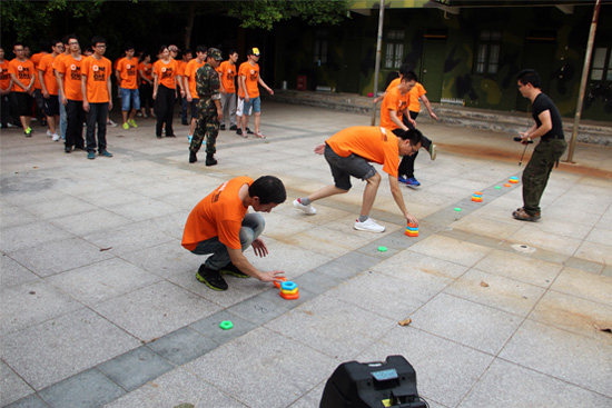 而“愚公移山”則是一個考驗抓取核心問題,并分解安排個人定位的項目。項目規(guī)則看似簡單,只要遵守規(guī)則,把五塊由小到大的道具從一個地方移到另一個地方。但在短時間內(nèi)分配到每個人并依照規(guī)則進(jìn)行轉(zhuǎn)移,卻難住了不少隊伍。遺憾的是,八個小隊最終只有三個小隊完成了項目。當(dāng)然,沒完成項目的隊伍,隊長可就辛苦啦,做了好幾十個俯臥撐……