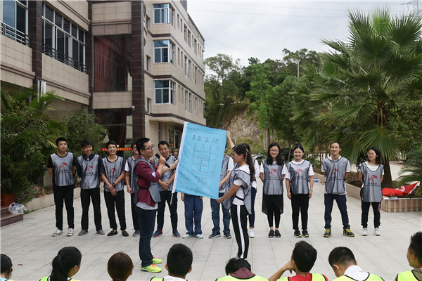玩了太多遍的拓展形式,大家也都輕車熟路,分隊,想隊名,集口號等等,也是很快的就完成。