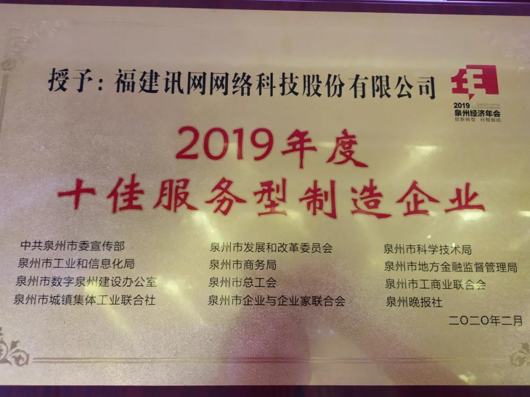 在2019泉州經(jīng)濟(jì)年會(huì)上,福建訊網(wǎng)網(wǎng)絡(luò)科技股份有限公司(簡(jiǎn)稱“訊網(wǎng)網(wǎng)絡(luò)”)榮獲“2019年度十佳服務(wù)型制造企業(yè)”。