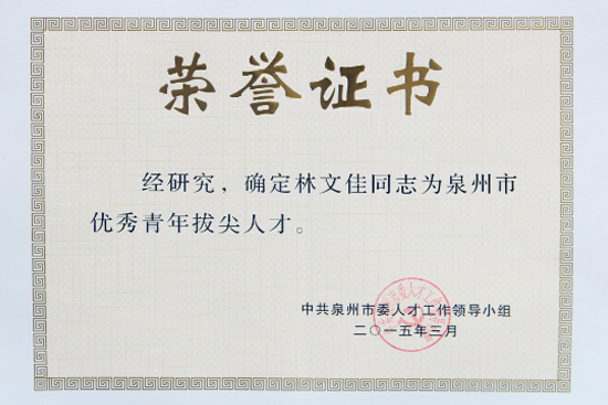 熱烈祝賀訊網網絡總經理榮獲泉州市十大優(yōu)秀青年拔尖人才