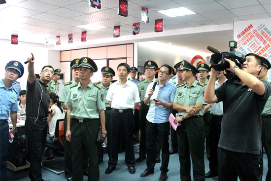 2013年8月1日,值此建軍八十六周年來臨之際,為進(jìn)一步增加部隊(duì)與民營企業(yè)的魚水之情,由泉州市委副書記周銀芳帶領(lǐng)的駐泉州部隊(duì)考察團(tuán)領(lǐng)導(dǎo)一行蒞臨訊網(wǎng)網(wǎng)絡(luò),先后考察了企業(yè)文化墻和環(huán)球鞋網(wǎng)、淘鞋網(wǎng)宣傳視頻以及淘鞋網(wǎng)實(shí)時(shí)銷售展示系統(tǒng)。